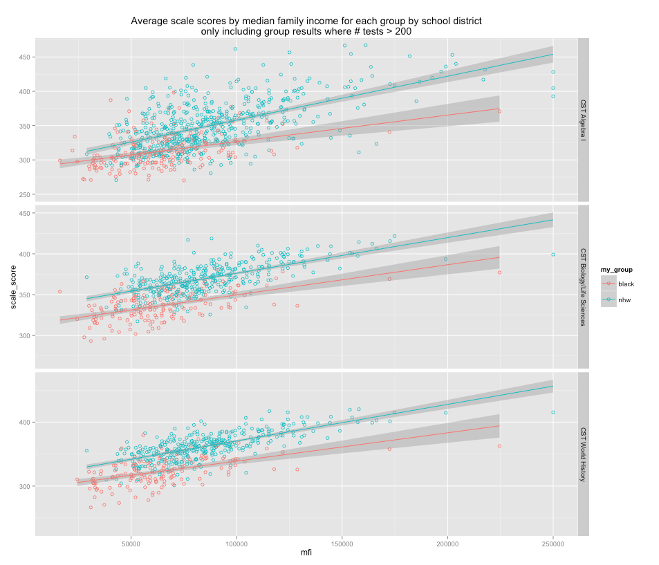 [Note: The better correlated tests here show virtually no effects here that cannot be predicted by each groups median family income]