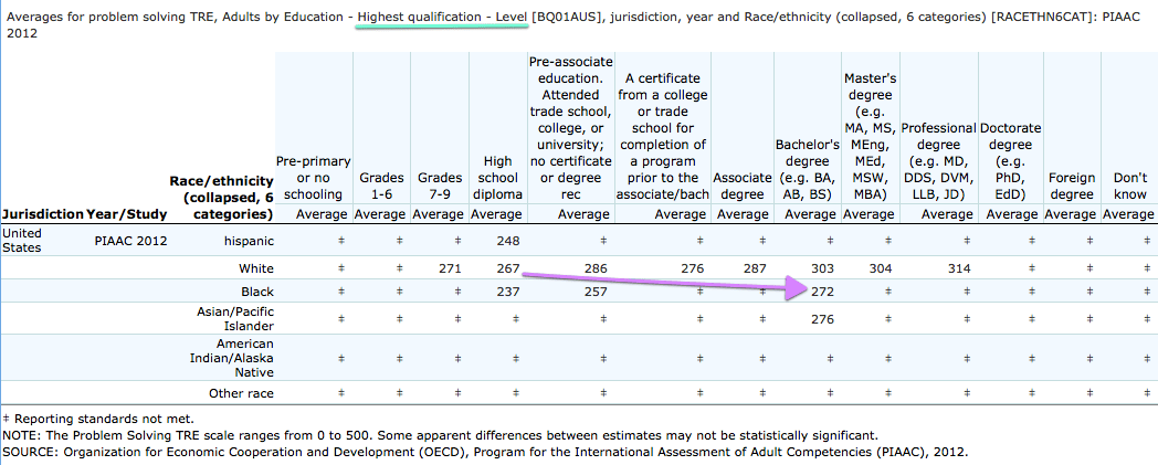 ….and we know that there are appreciable differences in test scores at all credential levels, especially at the HS or lower level. This is even true of tests designed for applied skills that are highly relevant to economic success: