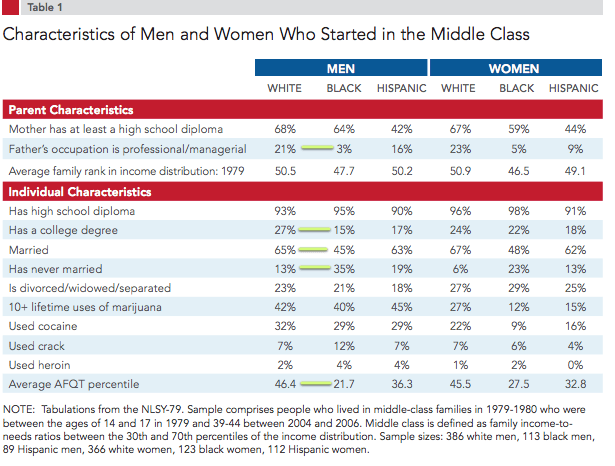 single biggest predictor of black-white differences in downward mobility from the middle class among these factors.