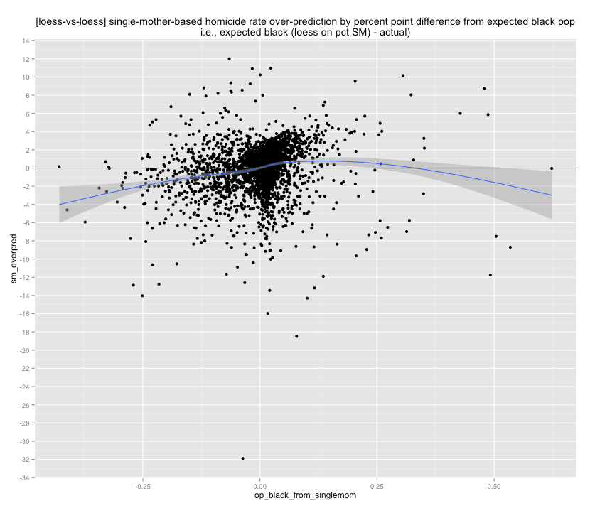 Controlling for single-motherhood rates with an unweighted loess regression I find little evidence to suggest that percent black adds much in the way of predictive validity.