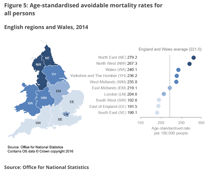 Even if we limit this to so-called (health care) “amenable mortality” similar gaps are found: