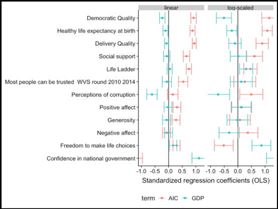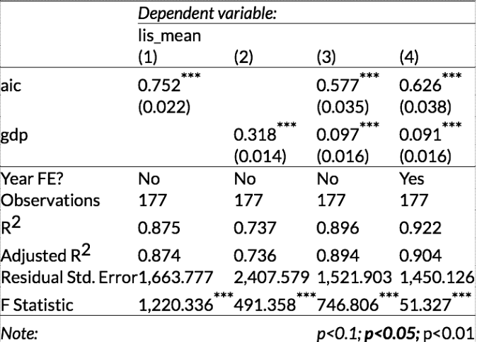 Unsurprisingly, we find AIC mediates GDP in multiple regression (OLS) for these same metrics.