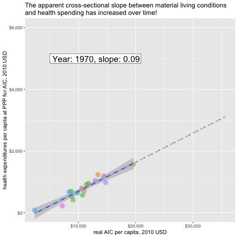 We also saw this elevated elasticity within the United States long before the advent of third-party payers in healthcare, so this seems to have limited explanatory value (it surely contributes something as a proximate cause, but these expansions are likely a consequence of rising living standards).