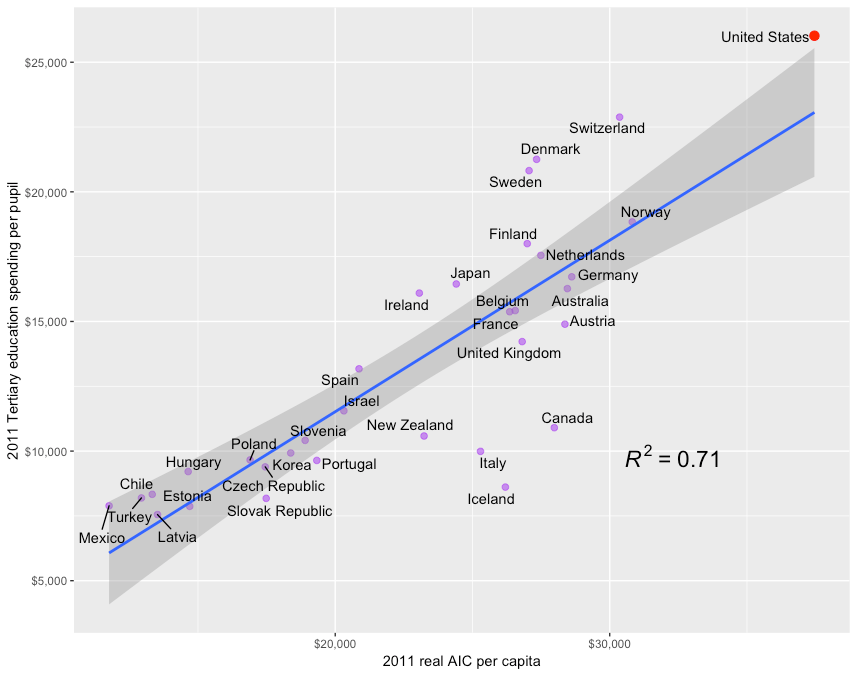 As a proxy for the actual causal variable GDP is (increasingly) subject to various types of error. These errors both attenuate the apparent relationship between income and health expenditures in general and, specifically in the case of the United States, undoubtedly lead to dramatically downwardly biased predictions. We can do better.