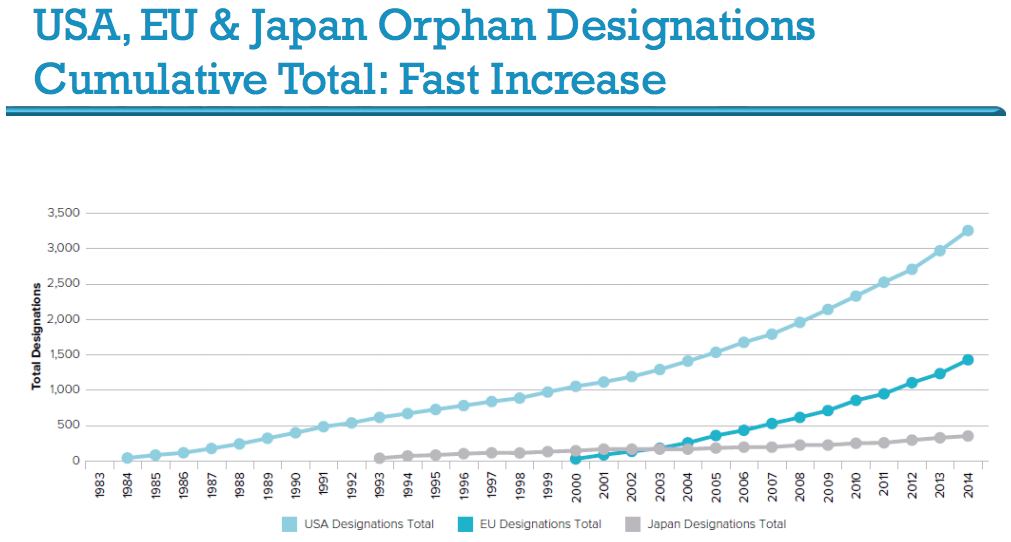 Consider the case of orphan drugs as something of a bellwether. These are drugs indicated for the treatment of very rare diseases.