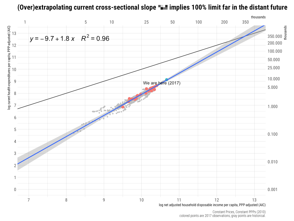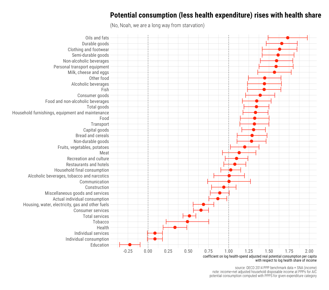 On Twitter, the other day, Noah Smith (@Noahpinion) argued the mere fact my model shows the income elasticity of health expenditure is greater than one implies these higher-income regimes are “starving themselves to death” to pay for healthcare.