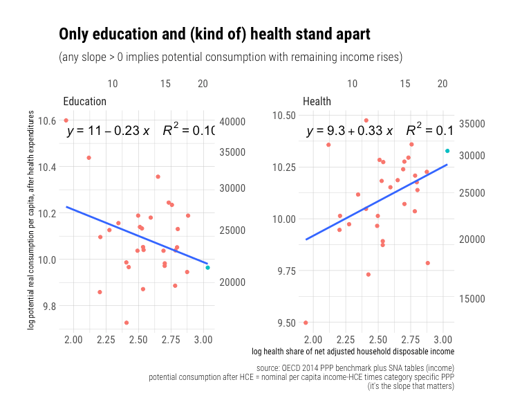 The only direct exceptions to this in OECD’s data are education and, sort of, health (insofar as it’s one of the few major categories with potential consumption not sloping sharply upwards).